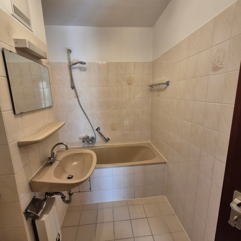 Helles, gut geschnittenes 1-Zimmer-Appartement mit großem, überdachtem Balkon, Abstellraum, inneliegendem Bad mit Wanne in ruhiger, gepflegter Wohnanlage.